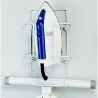 - Our ironing caddy is made from a white painted steel and is designed to hold your iron with a hook below to store your ironing board.